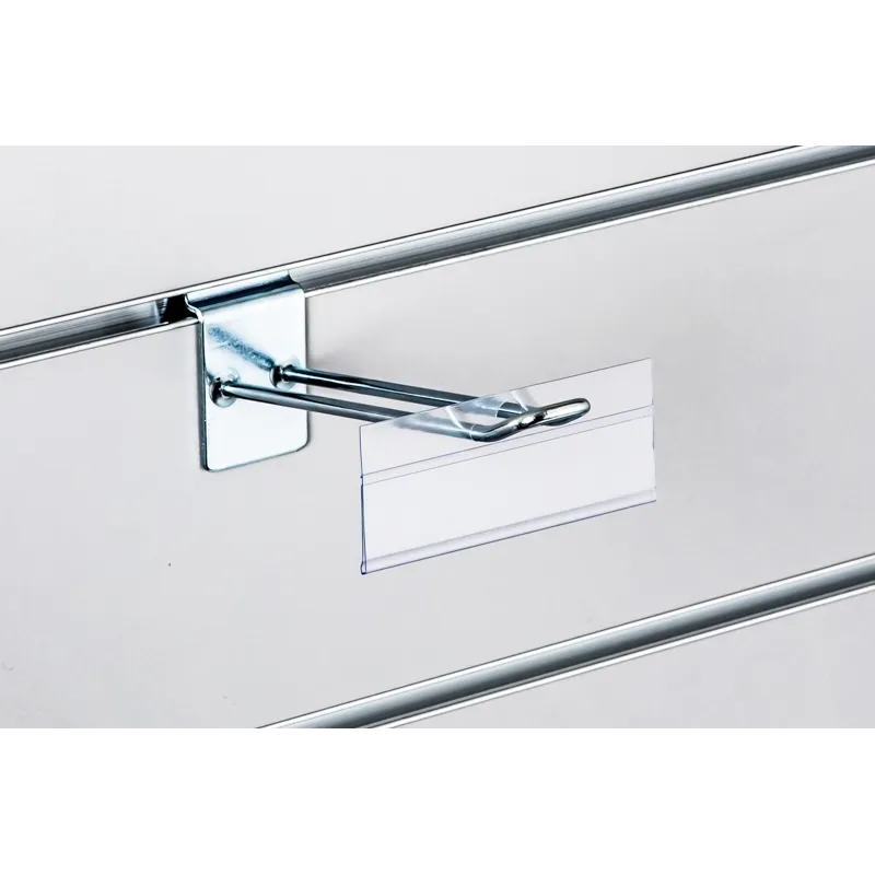 Etykietka cenowa, bezbarwna z osłonką, o wymiarach 11x2,6cm (szer./ wys.), mocowana na hak podwójny lub pojedynczy.