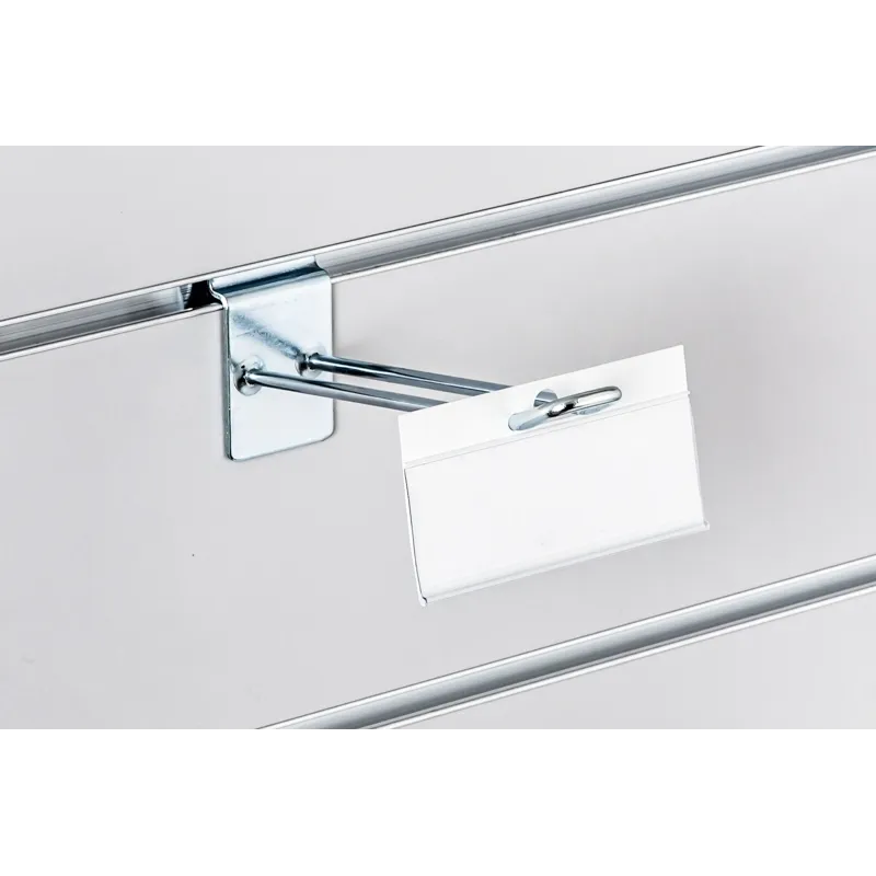 Etykietka cenowa, biała z osłonką, o wymiarach 11x3,9cm (szer./ wys.), mocowana na hak podwójny lub pojedynczy.
