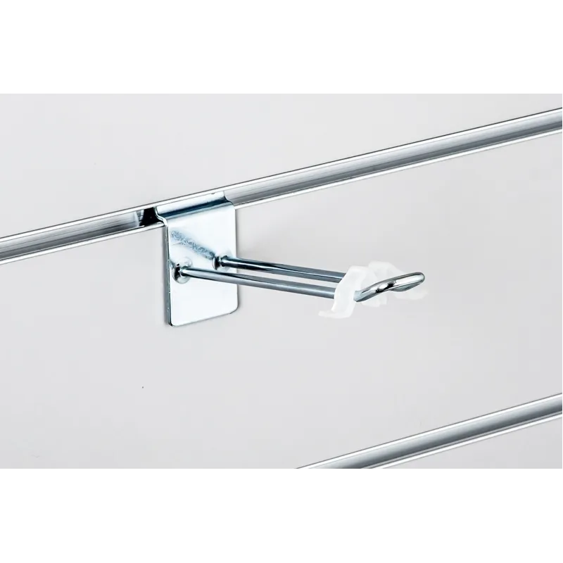 Ogranicznik zabezpiecza towary przed swobodnym zdjeciem go z haczyka oraz pozwala umiejscowić towar z przodu haczyka jeśli jego ilość jest zbyt mała.