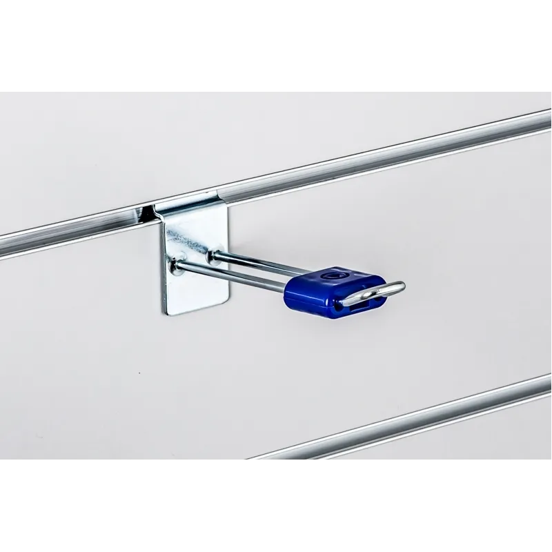 Zabezpieczenie antykradzieżowe, zamykane na kluczyk, niebieskie, na hak podwójny.