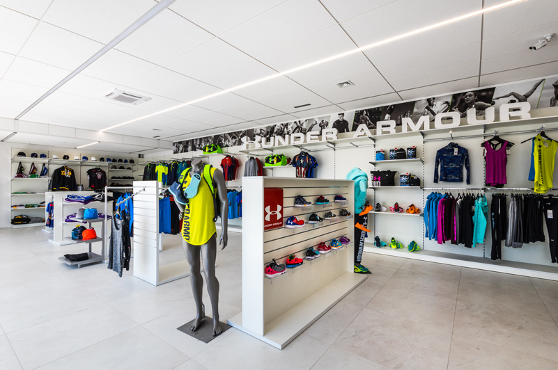 Jednym z inspirujących przykładów jest wyposażenie sklepu z odzieżą sportową w Łodzi. W tym przypadku zastosowaliśmy płyty meblowe laminowane oraz solidne regały sklepowe metalowe. Kluczową rolę odegrały tu panele Spacewall oraz system Soti Line, dzięki którym udało się stworzyć przestrzeń ekspozycyjną idealnie prezentującą szeroki asortyment sportowy – od odzieży po akcesoria.