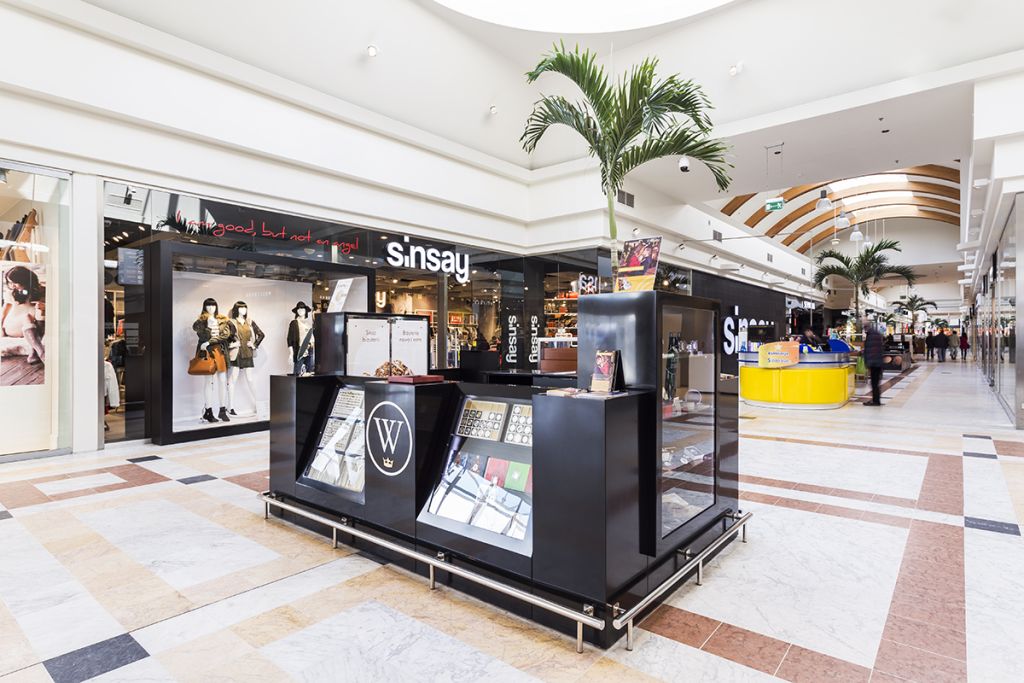 Wyspa jubilerska w jednej z wrocławskich galerii handlowych to doskonały przykład indywidualnego podejścia. Zastosowano tam specjalistyczne rozwiązania wykorzystujące: