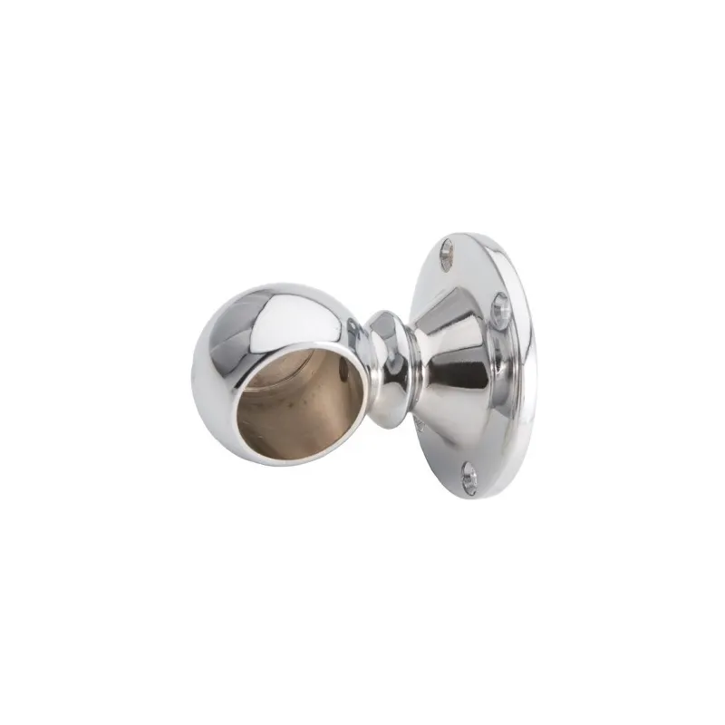 Uchwyt dystansowy, końcowy, do rury fi 25mm, równoległe mocowanie rury do ściany w odległości 3cm. Powłoka chromowana.