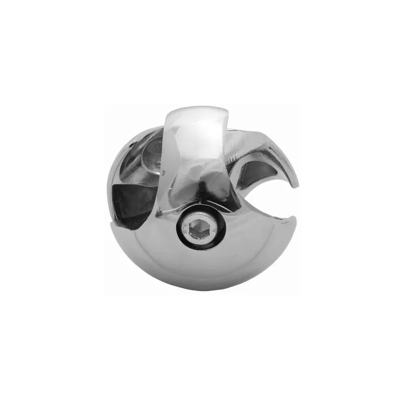 Złącze kuliste, łącznik dwukierunkowy, lewy, z imbusem zaciskowym służy do łączenia dwóch rur fi 25mm pod kątem 90 st. Powłoka chromowana.