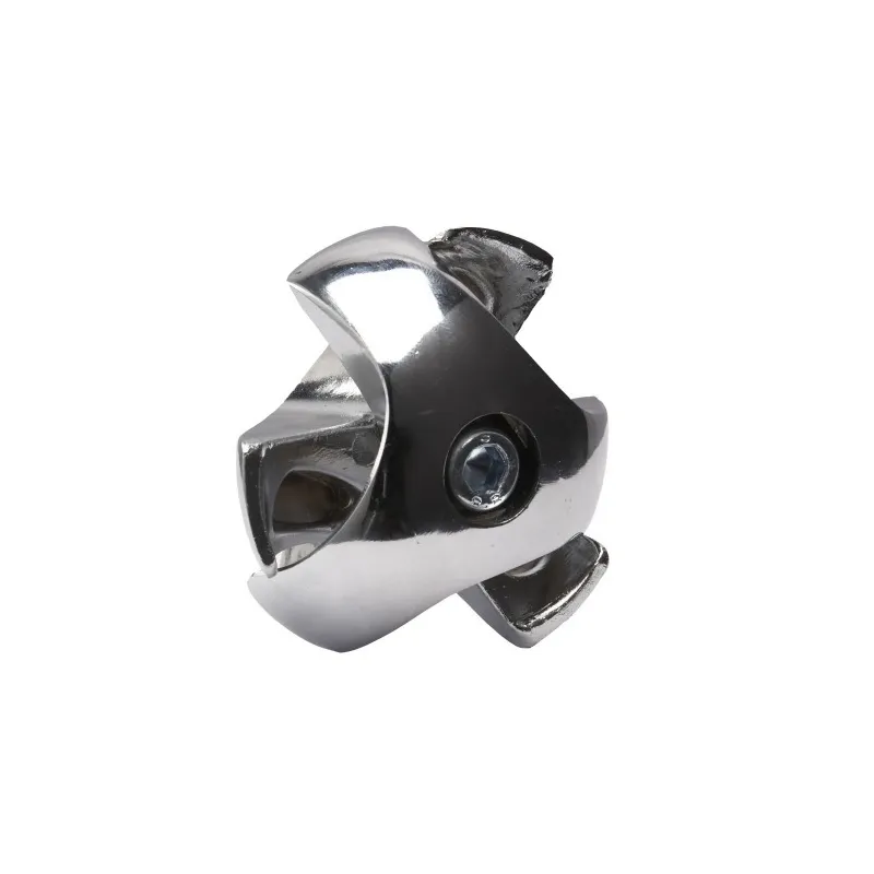 Złącze kuliste trzykierunkowe, prawe, zaciskane imbusem, łączy rury fi 25mm pod kątem 90 st. Chromowane.