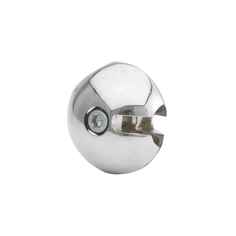 Złącze kuliste, prostopadłe, z imbusem zaciskowym służy do łączenia rur fi 25mm pod kątem 90 st. Powłoka chromowana.