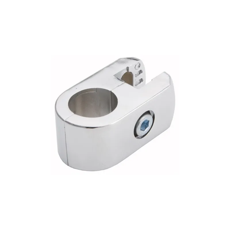 Złącze do płyty szkła, z imbusem zaciskowym, łączy rurę fi 25mm ze szkłem lub płytą meblową. Powłoka chromowana.