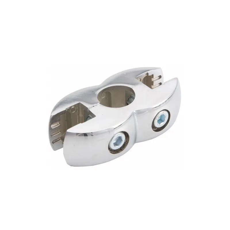 Złącze do płyty szkła podwójne, z imbusem zaciskowym służy do łączenia rur fi 25mm ze szkłem lub płytą meblową. Powłoka chromowana.