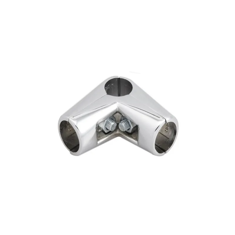 Złącze dwuramienne,kątowe, z imbusem zaciskowym. Służy do łączenia rur fi 25mm pod kątem 90 st. Powłoka chromowana.