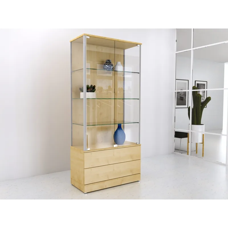 Gablota szklana 90x45x190cm, szuflady, pełna
