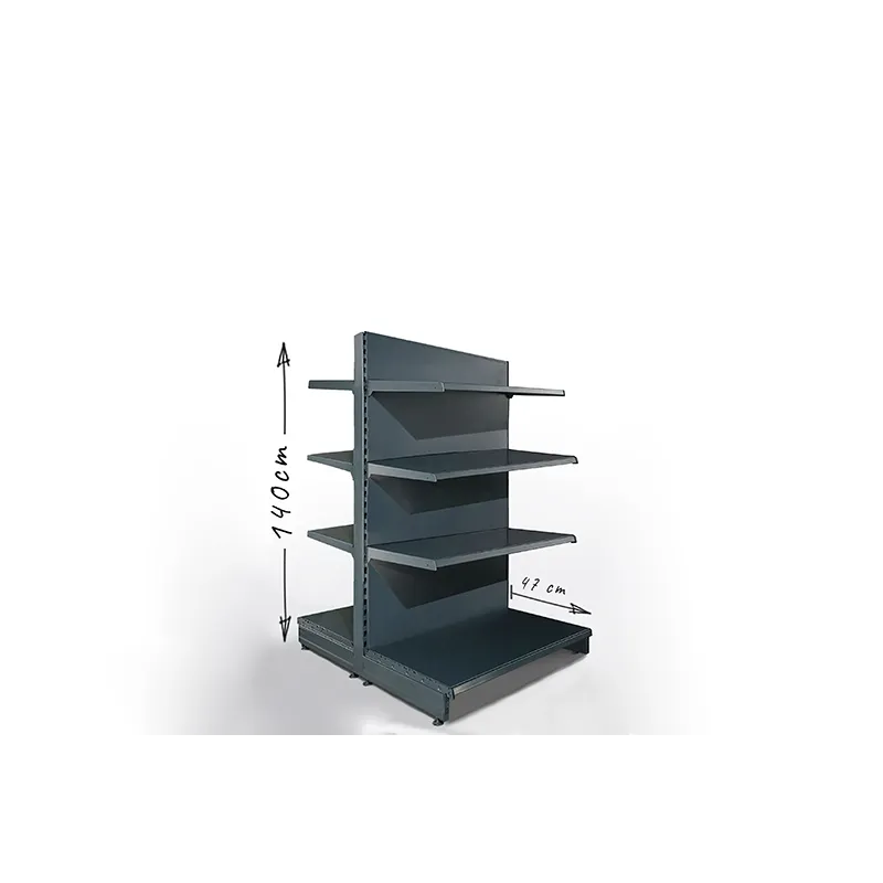 Gondola, regał dwustronny sklepowy o wysokości 140cm.