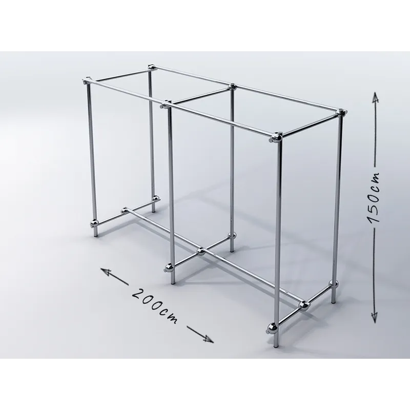 Gondola podwójna wykonana z rury stalowej, chromowanej o średnicy 25mm, elementów łączących chromowanych i czarnych stopek z tworzywa. W zestawie klucz imbusowy i instrukcja montażu. Gondola przeznaczona do samodzielnego złożenia.