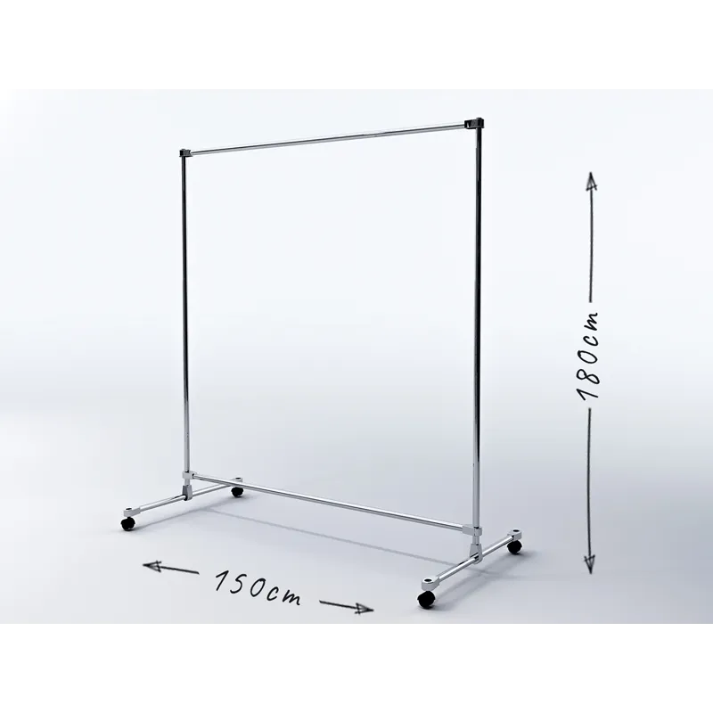 Gondola pojedyncza, jeżdżąca, wykonana z rury stalowej, chromowanej o średnicy 25mm, elementów łączących chromowanych i czarnych kółek z tworzywa. W zestawie klucz imbusowy i instrukcja montażu. Gondola przeznaczona do samodzielnego złożenia. Dolny drążek posiada regulację poziomu.