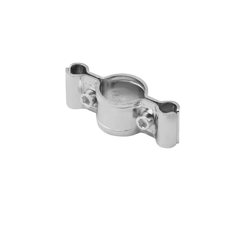 Złącze dwustronne do połączenia dwóch krat z rurą fi 25mm, chromowane. Złącze pozwala budować różnorodne konstrukcje z krat i rur systemu fi 25mm.
