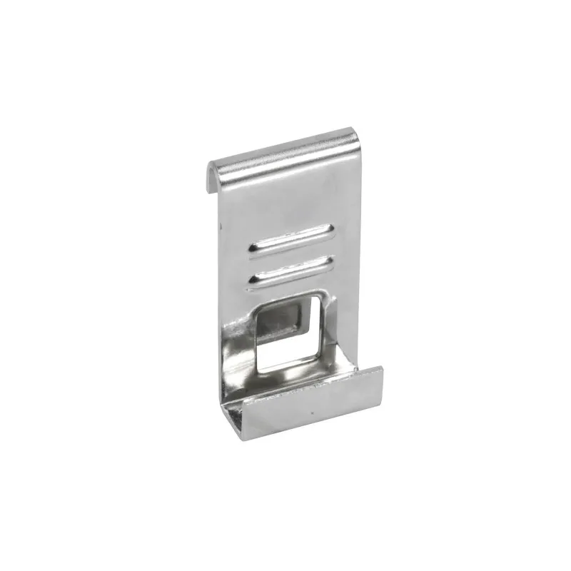 Wspornik półki drucianej, pozwalający zawiesić ją na kracie, chromowany. Wspornik i inne złącza systemu pozwalają budować różnorodne konstrukcje z krat, rur systemu fi 25mm i półek.