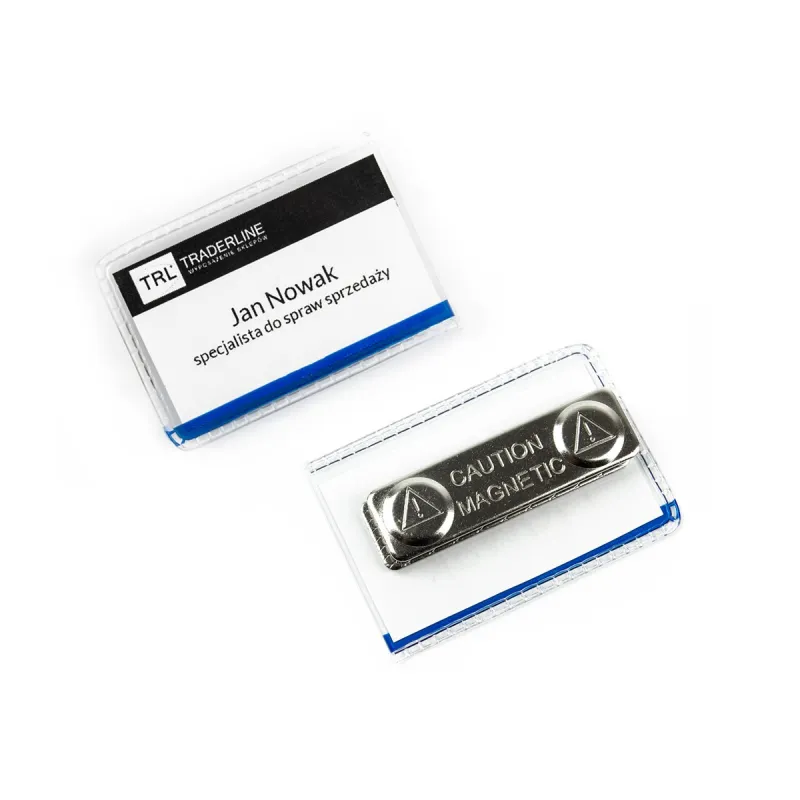 Identyfikator z przezroczystą kieszonką z PCV umożliwia umieszczenie wewnątrz dowolnej informacji.