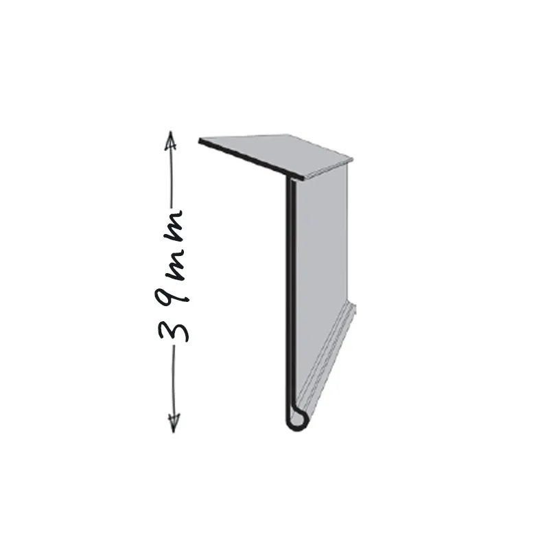 Listwa cenowa HE ma 39mm wysokości i zazwyczaj jest naklejana na górę półki. Przednia osłonka jest zawsze bezbarwna. Osłonka utrzymuje cenówkę w listwie i chroni ją przed kurzem i zabrudzeniami.