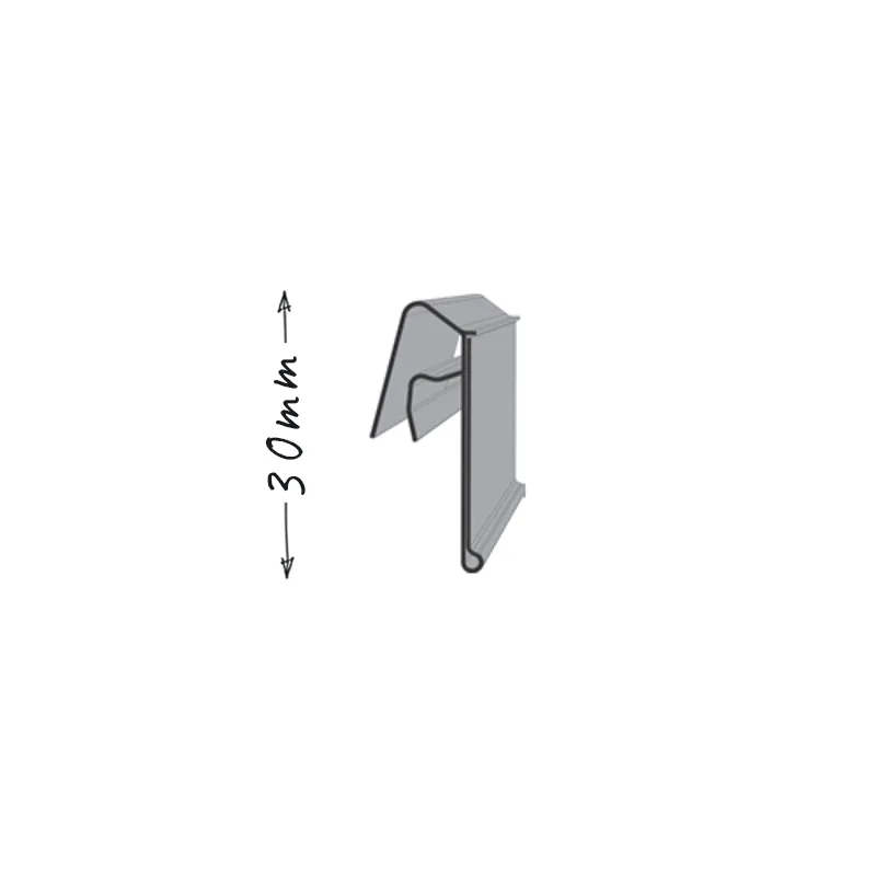 Listwa cenowa KE może mieć 30mm, 39 mm, lub 52mm wysokości. Przednia osłonka jest zawsze bezbarwna. Osłonka utrzymuje cenówkę w listwie i chroni ją przed kurzem i zabrudzeniami.