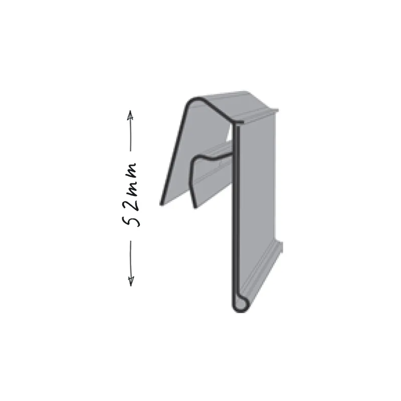 Listwa cenowa KE może mieć 30mm, 39 mm, lub 52mm wysokości. Przednia osłonka jest zawsze bezbarwna. Osłonka utrzymuje cenówkę w listwie i chroni ją przed kurzem i zabrudzeniami.