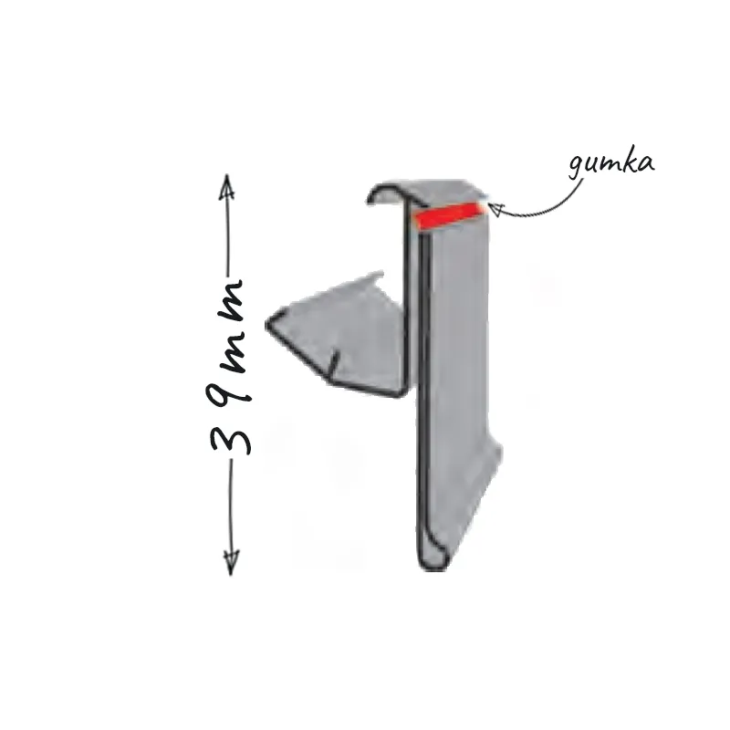 Listwa cenowa nakładana na półki regałów sklepowych z elastycznym zawiasem