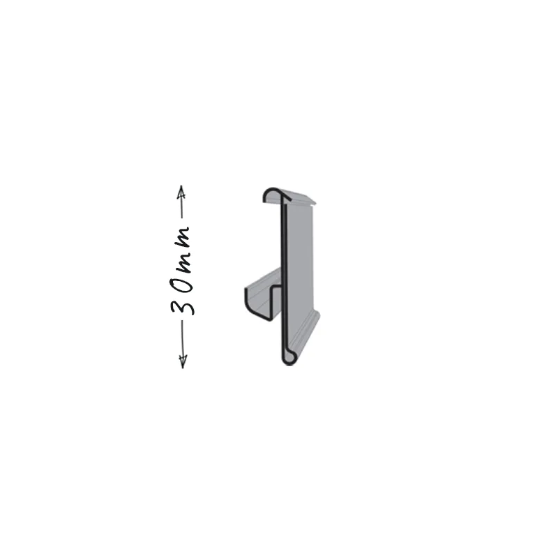 Listwa cenowa TE może mieć 30mm, 39 mm, 52mm lub 74mm wysokości. Przednia osłonka jest zawsze bezbarwna. Osłonka utrzymuje cenówkę w listwie i chroni ją przed kurzem i zabrudzeniami.