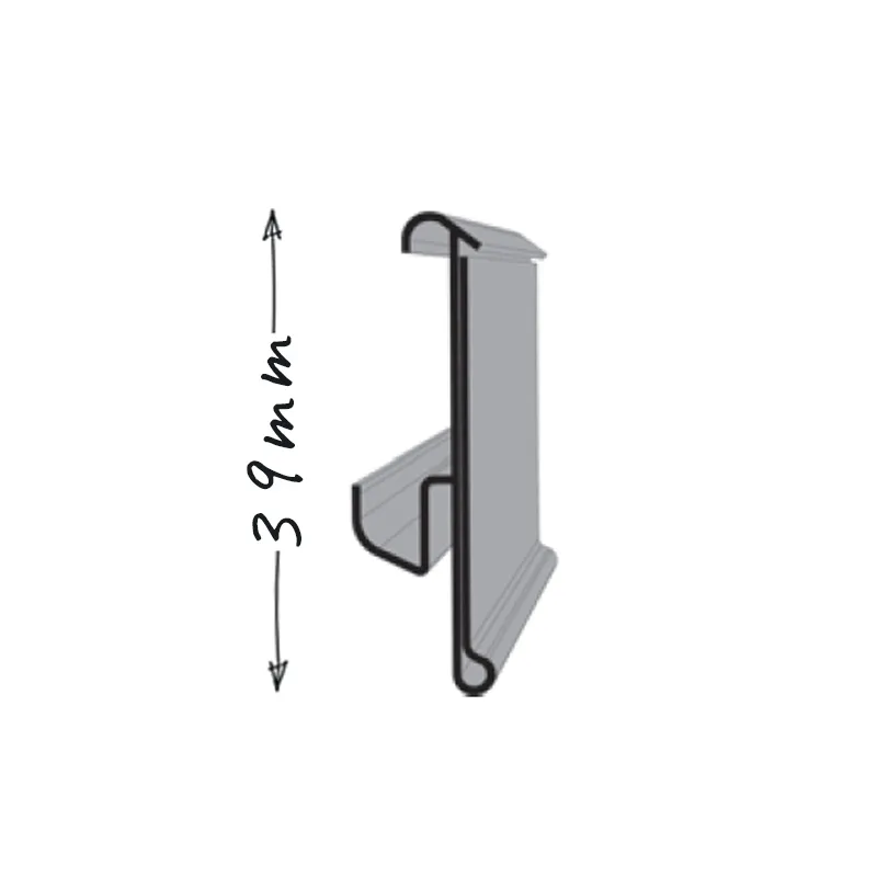 Listwa cenowa TE może mieć 30mm, 39 mm, 52mm lub 74mm wysokości. Przednia osłonka jest zawsze bezbarwna. Osłonka utrzymuje cenówkę w listwie i chroni ją przed kurzem i zabrudzeniami.