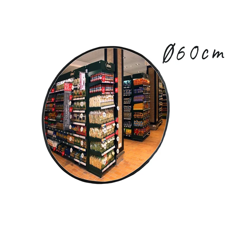 Lustro obserwacyjne o średnicy 60cm, w ramce z czarnego tworzywa. Lustro posiada uchwyt mocujący do ściany. Lustro przeznaczone do zapobiegania i wykrywania drobnych kradzieży w sklepie samoobsługowym. Stosuje się je także w ruchu drogowym do obserwacji słabo widocznych miejsc (parkingi, wyjazdy z bocznych ulic).