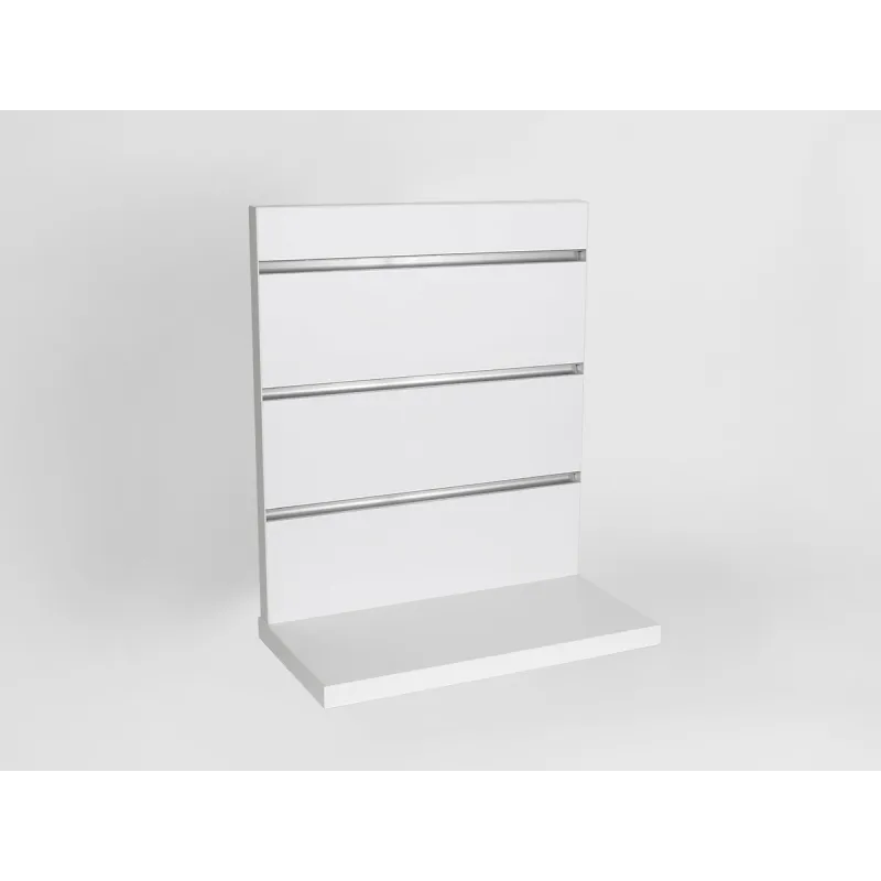 Ekspozytor posiada 3 lub 2 wsuwki aluminiowe lub z tworzywa w kolorze płyty.