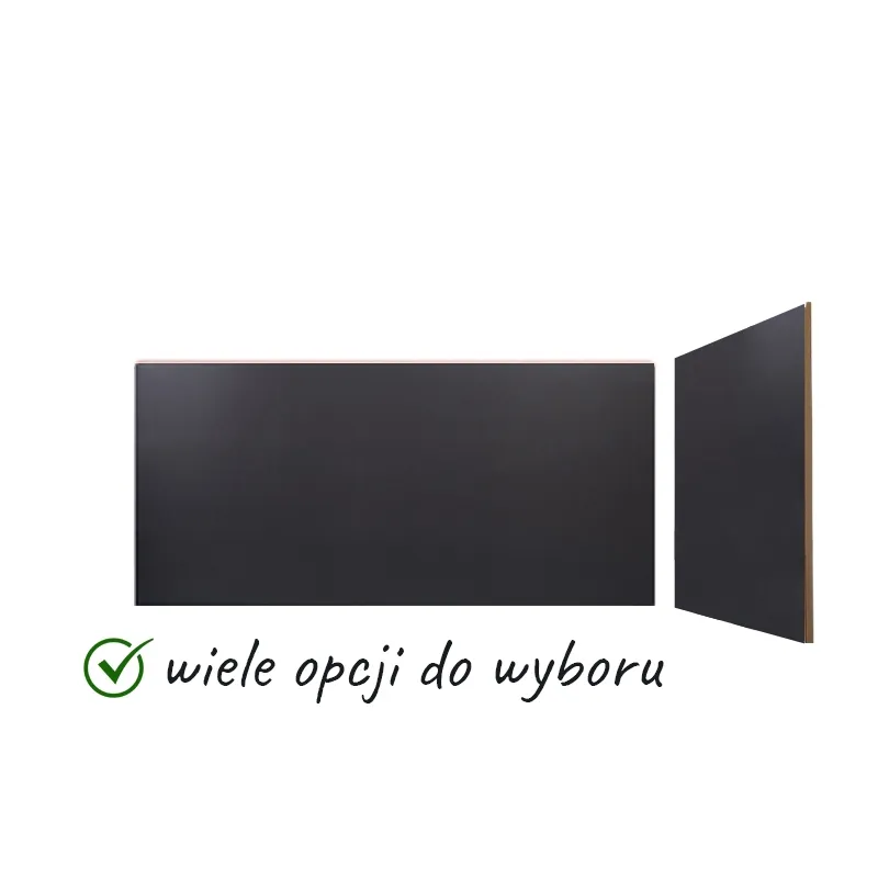 Cokół Slatwall o wymiarze: 100cm szerokości oraz 45cm wysokości. W kolorze grafitowym o symbolu 3114PE ze wzornika Kronopolu. Cokół jest wykonany z płyty MDF o grubości 18mm, obustronnie laminowany o perlistej strukturze powierzchni z jednym półfrezem do połączenia cokołu z panelami. Panele Spacewall na górze i na dole posiadają półfrezy umożliwiające łączenie modułów ze sobą i z cokołem za pomocą wsuwek, dzięki temu łączenie od frontu jest niewidoczne. Do łączenia paneli stosujemy standardową wsuwkę taką samą jak pozostałe, którą również można wykorzystać do zawieszania towarów.