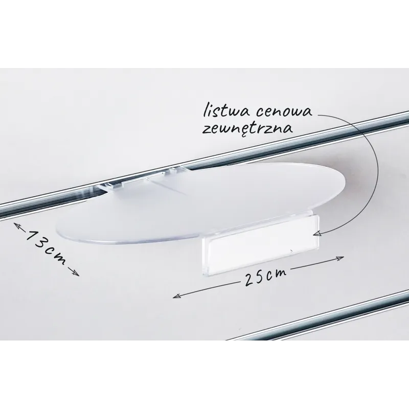 Półka owalna Slatwall 25x13cm mat, listwa cenowa