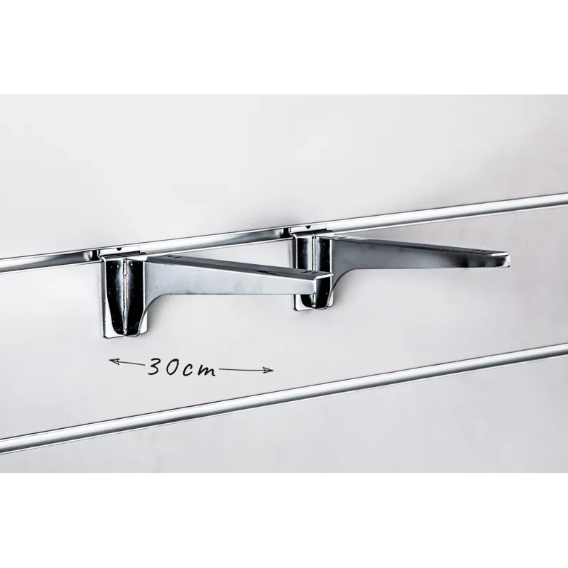 Wsporniki pod półki wykonane są ze stali pokrytej chromem. Całkowita długość wspornika to 30cm - wraz z zaczepem. Najlepiej sprawdza się pod półki o głębokości 30cm. Ekspozytor można wykorzystać jako urozmaicenie ekspozycji ustawiając na niej najnowsze produkty. Wspornik sprzedawany w parach.