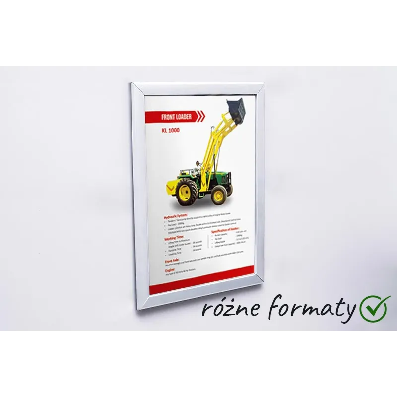 Ramka do ulotek i plakatów, wykonana z profili aluminiowych. Profile z łatwością można otwierać i zamykać dzięki czemu wymiana ulotek jest bardzo prosta. Ulotki zabezpiecza przezroczysta folia.