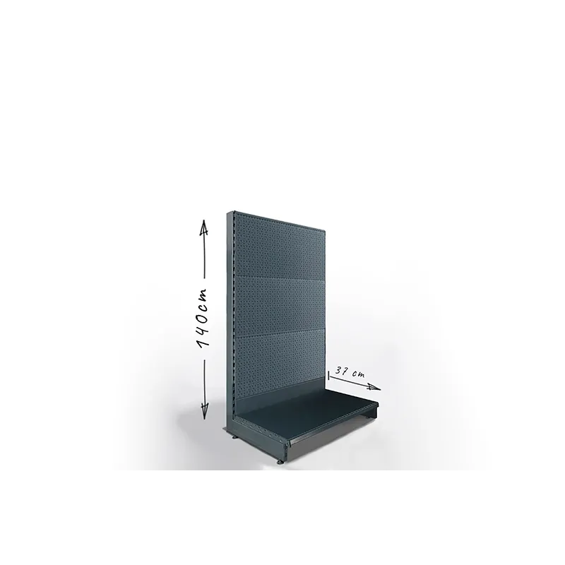 Regał jednostronny, sklepowy, z perforacją, o wysokości 140cm.