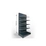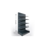 Regał wykonany jest w całości z elementów metalowych, malowanych proszkowo. Nogi perforowane umożliwiają zmianę poziomu/wysokości półki co 5cm. Na nogach zawieszone są plecy pełne, dzielone na segmenty. Półki posiadają wzmocnienia zapewniające stabilność i wysoki udźwig regału. Dodatkowo zaczepy półki pozwalają na montaż półek w dwóch płaszczyznach: poziomej i pochyłej.