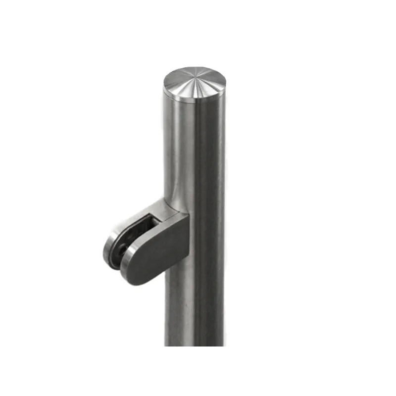 Słupek końcowy do baustrady w komplecie z dwoma uchwytami, podkładkami gumowymi na szkło o grubości 6mm, podstawą oraz zaślepką górną. Słupek ma wspawaną podstawę Fi 42,4x93x4mm z trzema otworami oraz wklejoną zaślepkę górną.