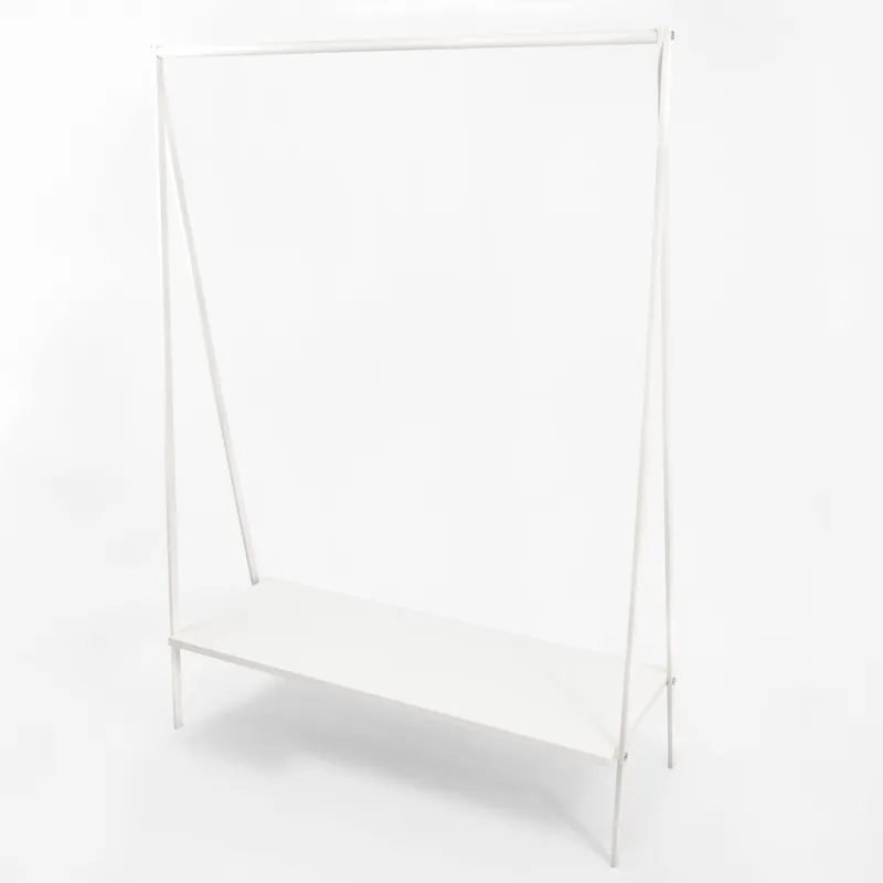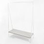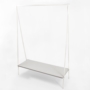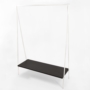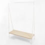 Nowoczesny stojak odzieżowy o minimalistycznej konstrukcji. Dopasowany do ekspozycji w wielu wnętrzach dzięki selekcji kolorystycznej stelaży (złoty, czarny lub biały) oraz półek ( 6 kolorów do wyboru).