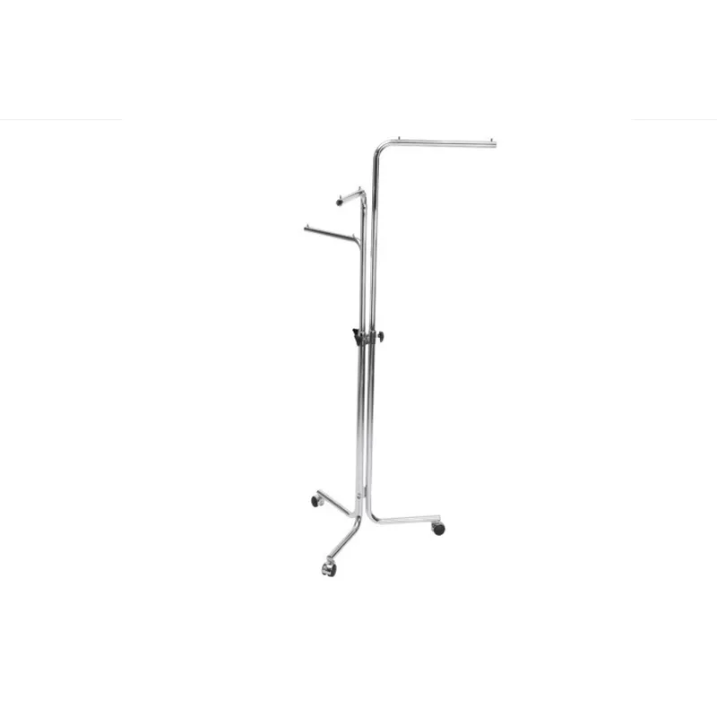 Stender, wieszak trzyramienny na kółkach służy do prezentacji, magazynowania i transportu odzieży w sklepie. Wieszak wykonany jest z profili stalowych, chromowanych. Wysokość wieszaka jest regulowana od 110cm do 180cm. Wieszak posiada trzy poziome drążki do ekspozycji odzieży. W podstawie wmontowane są kółka. Wieszak pakowany do samodzielnego, prostego montażu.