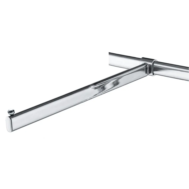 Wieszak prosty z rury owalnej 30x15mm, mocowany na wspornik z rury owalnej. Zawieszaka zakończona kulką. Wieszak służy do ekspozycji odzieży frontem do klienta.