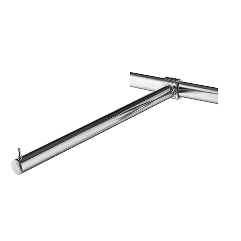 Wieszak prosty z rury fi 25mm, mocowany na wspornik z rury owalnej. Zawieszaka zakończona bolcem. Wieszak służy do ekspozycji odzieży frontem do klienta.