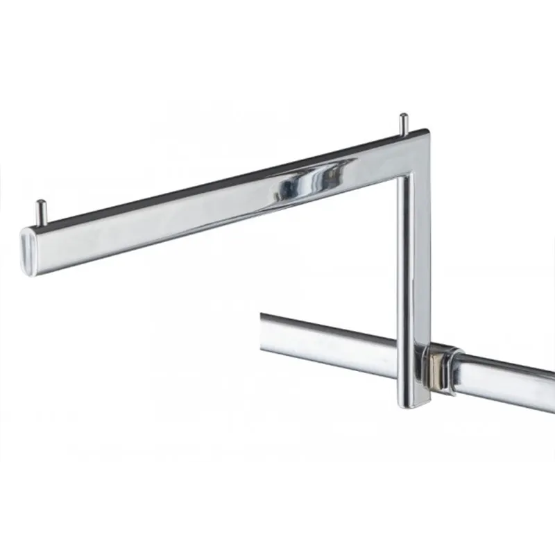 Wieszak prosty, podniesiony, z rury owalnej, mocowany na wspornik z rury owalnej. Wieszak służy do ekspozycji odzieży frontem do klienta.