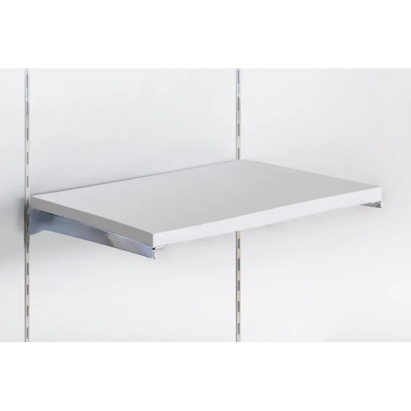 Półka z płyty meblowej na system Soti-Line o wymiarach 60,7x30cm lub 90,7x30cm. Półka wykonana z płyty o grubości 18mm z obrzeżem PCV. Dedykowana do prezentacji różnorodnyach towarów. Półka opiera sie na wspornikach stalowych chromowanych. Półkę można przykręcić na stałe do wsporników co będzie zapobiegać zsuwaniu się półki ze wsporników. Ekspozytor można wykorzystać jako urozmaicenie ekspozycji ustawiając na nim najnowsze produkty.