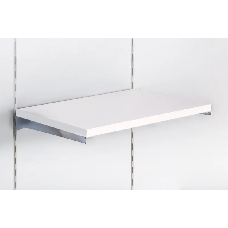 Półka z płyty meblowej na system Soti-Line o wymiarach 60,7x30cm lub 90,7x30cm. Półka wykonana z płyty o grubości 18mm z obrzeżem PCV. Dedykowana do prezentacji różnorodnyach towarów. Półka opiera sie na wspornikach stalowych chromowanych. Półkę można przykręcić na stałe do wsporników co będzie zapobiegać zsuwaniu się półki ze wsporników. Ekspozytor można wykorzystać jako urozmaicenie ekspozycji ustawiając na nim najnowsze produkty.