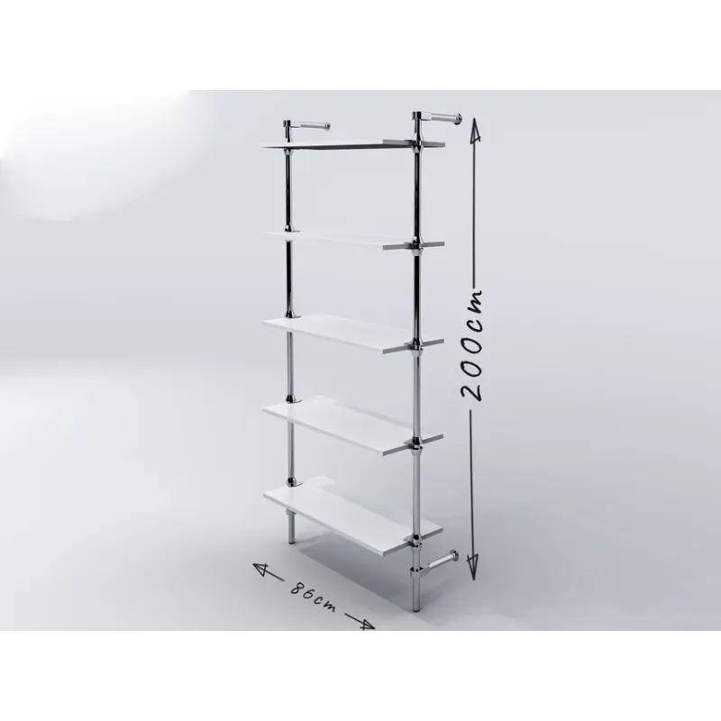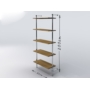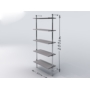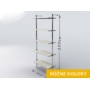 Regał przyścienny, wykonany z rury stalowej, chromowanej o średnicy 25mm, elementów łączących chromowanych i czarnych stopek z tworzywa. Półki z płyty meblowej o grubości 18mm z płynną regulacją poziomu.