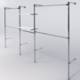 chromowane rury o różnej średnicy oraz złączki. System obejmuje również