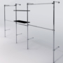 Wieszak przyścienny, dwupoziomowy, z dwiema półkami, wykonany z rury stalowej o średnicy 25mm oraz elementów łączących. Wszystkie elementy stalowe wykończone w chromie. Półki z płyty meblowej o gr. 18mm z obrzeżem PCV.