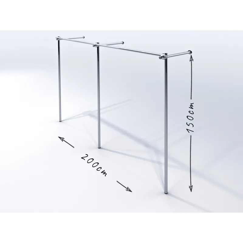 Wieszak wykonany z rury stalowej, chromowanej o średnicy 25mm, elementów łączących chromowanych i czarnych stopek z tworzywa. W zestawie klucz imbusowy i instrukcja montażu. Wieszak przeznaczony do samodzielnego złożenia.