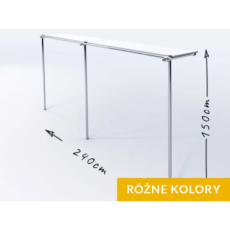 Wieszak przyścienny, wykonany z rury stalowej, chromowanej o średnicy 25mm, elementów łączących chromowanych, czarnych stopek z tworzywa i półki z płyty meblowej o gr. 18mm. W zestawie klucz imbusowy i instrukcja montażu. Wieszak przeznaczony do samodzielnego złożenia.