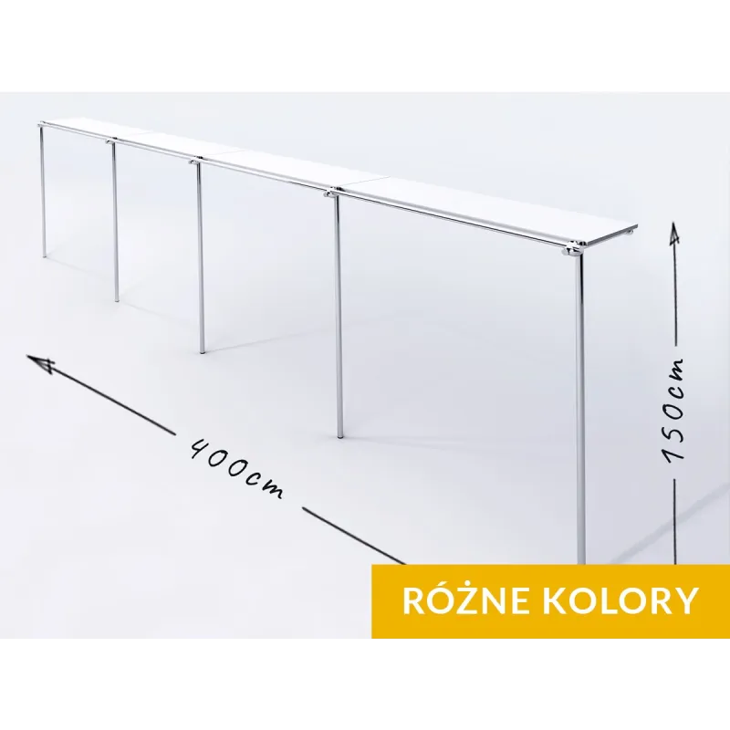 wieszak sklepowy, jednopoziomowy, mocowany do ściany, przeznaczony do ekspozycji odzieży bokiem, półka z płyty meblowej, wymiary 400x40x150cm, chromowany