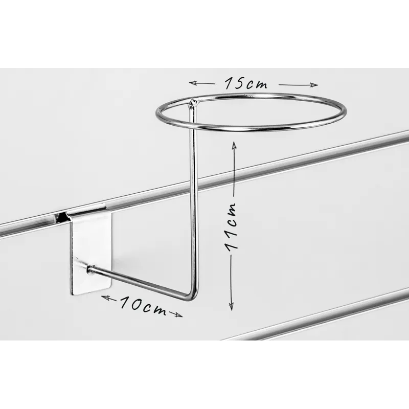 Wieszak na system Spacewall o szerokości 14cm oraz głębokości 26cm. Wieszak przeznaczony do prezentacji czapek. Produkt wykonany jest ze stali pokrytej chromem. Drut o grubości 6mm. Ekspozytor można wykorzystać jako prezentację najnowszych towarów.